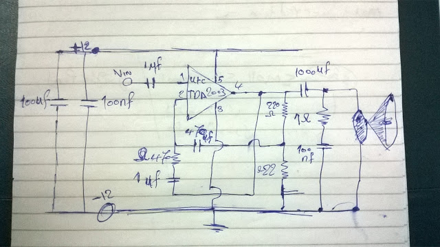 1. بالحقيقة أنني كنت مضيع مخطط توصيل هذه الدارة فشكراً لك لنشر المخطط طبعاً الدارة هي من أبسط دارات التكبير للصوت والتي كانت مستخدمة بكثرة في مسجلات السيارة القديمة وهي ظريفة وفعالة وذات صوت نقي